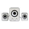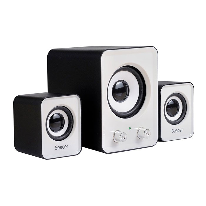 Boxele Spacer SPB-807 formeaza un sistem audio 2.1, cu alimentare prin USB si cu conector de input tip Jack de 3.5 mm. Lateralele boxelor sunt de culoare neagra, in timp ce partea frontala este alba. Cele trei difuzoare, 2×2″ a satelitilor si 1×3″ a subwoofer-ului au o putere totala de 11 W RMS (sateliti: 2×3 W, subwoofer: 1×5 W), care asigura un sunet stereo clar, cu un raport semnal/zgomot <65 dB si frecventa de raspuns de 50Hz-18kHz. Boxele Spacer SPB-807 au butoanele de control al volumului si al basului pe panoul frontal al subwoofer-ului asigurand un acces rapid si convenabil. Dimensiunile satelitilor sunt urmatoarele: 65x79x63 mm. Dimensiunile subwoofer-ului sunt urmatoarele: 134x100x115 mm.
