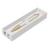 Pix Parker IM Royal Premium alb perlat cu accesorii aurii, un pix ce face parte din gama IM Roy-al. Gama Royal, lansata in anul 2016 pe piata britanica, reprezinta gama clasica refrisata cu ele-mente decorative, finisaje si ambalaje noi. Aceasta gama combina in mod natural functionalitatea cu eleganta, oferind o experienta aparte plina de incredere si de confort la scriere. Forma sa moderna se defineste prin linii clasice drepte, simple, bine conturate, ce incanta ochiul inca de la prima vedere. Fara rezerve, Parker IM Premium se prezinta ca un „scriitor” modern, simplu, fiabil si de calitate. Forma sa moderna, definita de linii clasice drepte si bine conturate, incanta simturile inca de la prima vedere. Fiecare detaliu, de la eleganta lucioasa a finisajelor la rafinamentul textur-ii cizelate pe corp si capac, este conceput pentru a rasfata simturile tactile si vizuale ale utiliza-torului. Pixul are corpul realizat din aluminiu gravat laser cu model cross line, lacuit cu lac alb per-lat. Pixul este prevazut cu un mecanism ce se actioneaza prin click (apasare) si contine o rezerva Parker. Pixul este dotat cu un grip realizat din alama, cizelat cu model brushed, placat cu aur de 23K. Accesoriile pixului sunt realizate din alama, placate cu aur de 23K. Pixul este dotat cu un clips realizat din otel inoxidabil, placat cu aur de 23K. Pixul se livreaza ambalat in cutie de cadou, si reprezinta un cadou ideal pentru orice ocazie. De fapt, IM se afla in topul vanzarilor si al prefer-intelor, fiind declarat pe buna dreptate de foarte multi utilizatori ca fiind „cadoul accesibil care conteaza”. Se poate opta si pentru o ambalare premium, intr-un extrem de elegant etui de piele sau o cutie de cadou, pe care le puteti alege din Accesorii pentru cadouri.