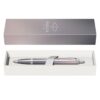 Pix Parker IM Royal Rituals gri cu accesorii cromate, un pix ce face parte din gama IM Royal Rit-uals. Intr-o lume care curge in fluxuri rapide si gesturi scurte, colectia Parker IM Royal Rituals propune un act rar: sa incetinesti. Sa-ti asculti gandurile. Sa le transformi in cuvinte, nu in graba, ci in tihna. Aici, scrisul nu mai este doar mijloc de comunicare. Devine ritual. Aceasta colectie nu este despre obiecte luxoase, ci despre stari. Despre cum un instrument de scris bine ales iti poate ancora mintea, clarifica intentiile si da greutate gandurilor. Corpul pixului este realizat din alama, lacuit cu lac gri mat. Pixul este prevazut cu un mecanism ce se actioneaza prin click (apasare) si contine o rezerva Parker. Pixul este dotat cu un grip din alama lacuit cu lac gri mat. Accesoriile pixului sunt realizate din alama, placate cu crom. Pixul este dotat cu un clips realizat din otel inox-idabil, placat cu crom. Pixul se livreaza ambalat in cutie de cadou, si reprezinta un cadou ideal pentru orice ocazie. Se poate opta si pentru o ambalare premium, intr-un extrem de elegant etui de piele sau o cutie de cadou, pe care le puteti alege din Accesorii pentru cadouri.