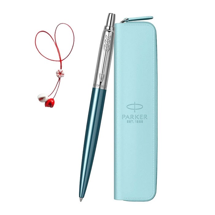 Pix Parker Jotter Royal albastru cu accesorii cromate, un pix ce face parte din gama Jotter Royal. Gama Jotter a reusit de-a lungul timpului sa stranga in palmares cateva recorduri de invidiat. Este unul dintre cele mai longevive produse de la Parker si in acelasi timp cel mai vandut produs din istoria Parker. Este considerat unul dintre cele mai ergonomice pixuri din lume, imbinand intr-o armonie perfecta raportul dimensiuni-forma-greutatea, dublate de o fiabilitate de exceptie a mecanismului. Pentru toate acestea este in topul preferintelor consumatorilor, fiind extrem de indragit si apreciat de catre utilizatori. Pixul are corpul superior realizat din otel inoxidabil sablat, cizelat cu model brushed, placat cu crom si corpul inferior realizat din otel inoxidabil polisat, cizelat cu model brushed, lacuit cu multiple straturi de lac albastru lucios. Pixul este prevazut cu un mecanism ce se actioneaza prin click (apasare) si contine o rezerva Parker. Accesoriile pixului sunt realizate din otel inoxidabil placate cu crom. Pixul este dotat cu un clips realizat din otel inoxidabil placat cu crom. Setul contine si un etui Navy albastru cu fermoar. Acest set poate reprezenta un cadou deosebit pentru orice ocazie.
