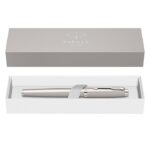 Roller Parker IM Royal purpuriu cu accesorii cromate, un roller ce face parte din gama IM Royal. Gama Royal, lansata in anul 2016 pe piata britanica, reprezinta gama clasica refrisata cu elemente decorative, finisaje si ambalaje noi. Aceasta gama combina in mod natural functionalitatea cu eleganta, oferind o experienta aparte plina de incredere si de confort la scriere. Forma sa moderna se defineste prin linii clasice drepte, simple, bine conturate, ce incanta ochiul inca de la prima vedere. Rollerul are corpul realizat din otel, cizelat cu model brushed, lacuit cu multiple straturi de lac purpuriu lucios. Rollerul functioneaza cu rezerva standard pentru roller cu cerneala si contine o rezerva pentru roller Parker. Rollerul este prevazut cu un grip realizat din alama cromata, acoperit cu multiple straturi de rasina acrilica de culoare neagra. Capacul rollerului este realizat din otel, cizelat cu model brushed, lacuit cu multiple straturi de lac purpuriu lucios. Capacul se inchide prin apasare. Accesoriile rollerului sunt realizate din alama, placate cu crom. Rollerul este dotat cu un clips din otel inoxidabil, placat cu crom. Rollerul se livreaza ambalat in cutie de cadou, si reprezinta un cadou ideal pentru orice ocazie. De fapt, IM se afla in topul vanzarilor si al preferintelor, fiind declarat pe buna dreptate de foarte multi utilizatori ca fiind „cadoul accesibil care conteaza”. Se poate opta si pentru o ambalare premium, intr-un extrem de elegant etui de piele sau o cutie de cadou, pe care le poti alege din Accesorii pentru cadouri.