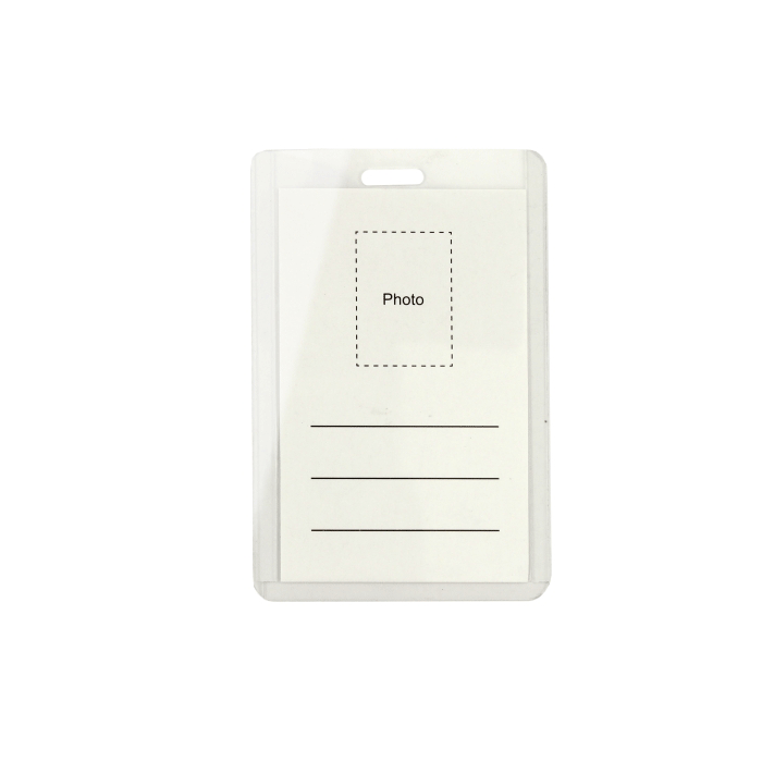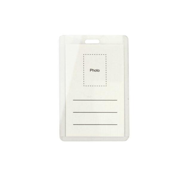 Ecuson vertical, realizat din material plastic transparent, flexibil. Dimensiunile ferestrei ecusonului sunt urmatoarele: 86 x 55 mm. Ecusonul se livreaza impreuna cu un carton alb pentru inscrisuri. Grosimea plasticului este de: 0,5 mm. Ambalare: 100 bucati/cutie.
