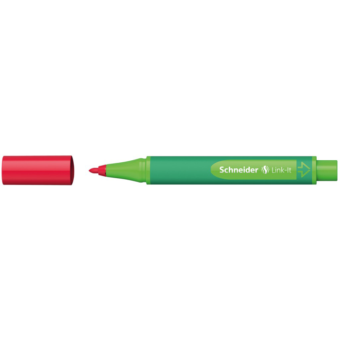 Liner Schneider Link-it de culoare rosie, un liner de calitate, cu o grosime a liniei de scriere de 1 mm. Linerul are o forma ergonomica triunghiulara, realizat in proportie de 88% din plastic biodegradabil, pentru o folosire usoara si comoda. Liner-ul prezinta la celalat capat un sistem „click”, primul sistem modular care permite asocierea inteligenta a doua instrumente de scris. Liner-ul poate fi combinat cu linerele de 0.4mm de diferite culori. Pentru a se putea prinde, cele doua instrumente de scris trebuie puse capat in capat, cu sagetile pe acceasi parte, si impinse una in cealalta pana se aude un click. Cerneala linerului este o cerneala pe baza de apa si substante naturale. Grosimea liniei de scriere de 1 mm ideala pentru a desena sau scrie.