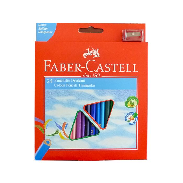 Creioane colorate 24 culori triunghiulare Faber Castell + ascutitoare 120524
