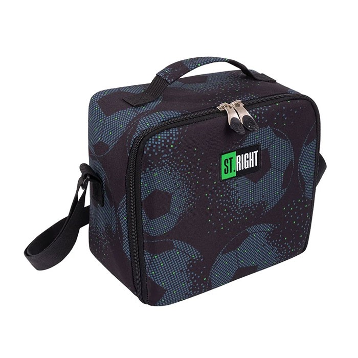 Geanta de umar cu compartiment termic pentru mancare St. Majewski, Colectia Football, o geanta din materiale de cea mai buna calitate. Datorita compartimentului izolat termic, geanta este perfecta pentru scoala si calatorii, in vederea depozitarii in siguranta si la temperaturi optime a alimentelor si bauturilor. Imprimeul este cu atat mai atragator datorita design-ului in culori placute, pe placul copiilor. Geanta este prevazuta cu maner captusit si bretele ajustabile, ceea ce ii confera un confort sporit in timpul purtarii. Geanta se inchide cu fermoar. Dimensiunile gentii sunt urmatoarele: 20x22x11 cm.