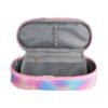 Penar borseta 1 compartiment, 1 extensie, oval, Majewski, Colectia Pastel Pixels, un penar compact, dar spatios in acelasi timp. Penarul este realizat dintr-un material textil, rezistent si impermeabil. Penarul are o forma ovala ergonomica si este prevazut cu doua fermoare rezistente. Penarul dispune de o capacitate mare de echipare, oferind suficient spatiu pentru diverse rechizite: rigla, ascutitoare, compas, instrumente de scris sau instrumente de colorat. Penarul este dotat cu o extensie, care este prevazuta cu elastice pentru fixarea instrumentelor de scris, precum si cu un buzunar interior ce se inchide cu fermoar. Dimensiunile penarului sunt urmatoarele: 20.5×9.5×5 cm.