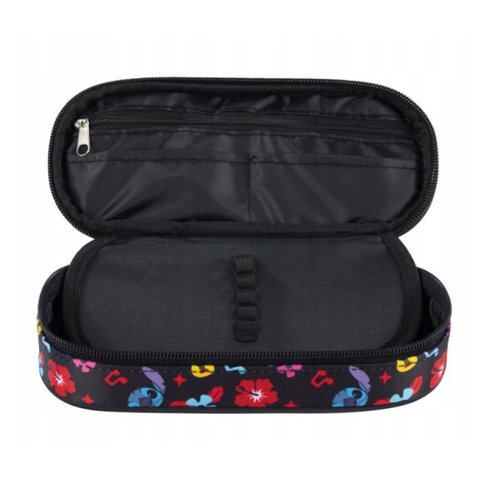 Penar borseta 1 fermoar, 1 extensie, oval, Majewski, Gama St. Right, Colectia Stitch Black Aloha, un penar compact, dar spatios in acelasi timp. Penarul este realizat dintr-un material textil, rezistent si impermeabil. Penarul are o forma ovala ergonomica si este prevazut cu doua fermoare rezistente. Fermoarele au zona de prindere cauciucata si profilata, pentru prindere usoara. Dispune de o capacitate mare de echipare, oferind suficient spatiu pentru diverse rechizite: rigla, ascutitoare, compas, instrumente de scris sau instrumente de colorat. Penarul este dotat cu o extensie ce are un compartiment ce se inchide cu fermoar pe o parte (ideal pentru a pastra diverse articole de mici dimensiuni), si elastice pe cealalta parte (pentru fixarea instrumentelor de scris). Dimensiunile penarului sunt urmatoarele: 23×9.5×5.5 cm.