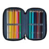 Penar echipat, prevazut cu 3 fermoare, Majewski, Gama St. Right, Colectia Moro, un penar compact si spatios. Penarul este realizat dintr-un material textil, de foarte buna calitate, rezistent si impermeabil. Penarul este prevazut cu trei compartimente si dispune de o capacitate mare de echipare, oferind suficient spatiu pentru diverse rechizite. Penarul este echipat cu urmatoarele rechizite: 1 rigla de 15 cm, 1 radiera, 1 ascutitoare, 9 carioci, 9 linere, 18 creioane colorate, 2 creioane grafit, 2 pixuri, 1 compas, 1 echer, 1 raportor si 1 orar. Fermoarele penarului sunt rezistente, dotate cu o zona de prindere cauciucata si profilata, pentru prindere usoara. Dimensiunile penarului sunt urmatoarele: 20x13x6 cm.