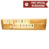Joc remy din lemn, un joc de societate cunoscut, apreciat si distractiv, ideal pentru a petrece timpul cu familia si prietenii. Jocul de remy este un joc recomandat atat adultilor, cat si copiilor, deoarece ajuta la dezvoltarea abilitatilor de concentrare, atentie, organizare, asociere si socializare. Jocul contine: 104 piese in 4 culori numerotate de la 1 la 13 (cate 2 piese din fiecare numar si culoare), 2 piese Joly, 4 table de joc din lemn masiv si un saculet pentru depozitarea pieselor. Numar de jucatori: 2-4. Tablele de joc sunt realizate din lemn masiv natural, si sunt lacuite, pentru o rezistenta mai mare in timp. Piesele sunt realizate din plastic, de culoare alba. Dimensiunea pieselor de joc este urmatoarea: 39×27 mm. Produsul nu este recomandat copiilor mai mici de 3 ani. Se recomanda utilizarea produsului de catre copiii cu varsta mai mare de 6 ani. Produsul poate fi curatat cu o carpa moale, uscata. Se recomanda ferirea produsului de umezeala si caldura excesiva.